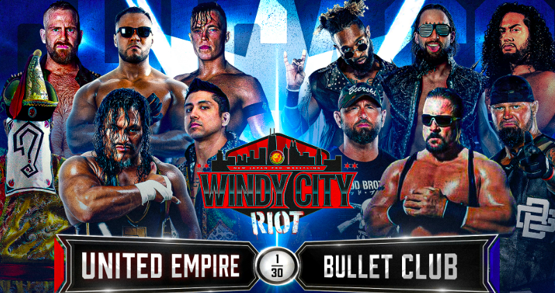 New Japan Pro Wrestling issued the following press release announcing a 12-man tag team matchup for the April 16th Windy City Riot event from the Odeum Expo Center in Chicago, Illinois. The Bullet Club, with the addition of the legendary Scott Norton, will be taking on the United Empire. Full details, including an updated card, can be found below.