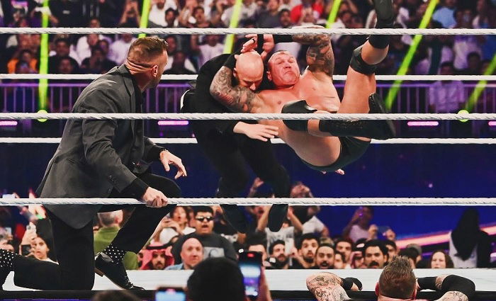 Adam Pearce got physically caught up in the insanity that was Randy Orton vs. Kevin Owens at WWE Crown Jewel 2024.
