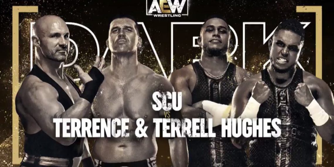 Frankie Kazarian and Terrell Hughes will start things off. Collar and Elbow Tie Up. Kazarian with a drop toe hold. Kazarian applies a side headlock. Terrell with heavy bodyshots. Terrell goes for a Belly to Back Suplex, but Kazarian lands back on his feet. Kazarian with a knife edge chop. Terrell reverses out of the irish whip from Kazarian. Kazarian dives over Terrell. Kazarian ducks a clothesline from Terrell. Kazarian with a Counter Hip Toss. Kazarian with a deep arm-drag. Kazarian applies an arm-bar. Kazarian tags in Daniels. Double Wrist Lock. Kazarian kicks Terrell in the chest. Daniels clotheslines the back of Terrell’s neck. Kazarian with The Double Foot Stomp. Daniels slams Terrell’s head on the top turnbuckle pad. Daniels hammers down on the back of Terrell’s neck. Daniels whips Terrell across the ring. Terrell ducks under the chop from Daniels. Terrell avoids a dropkick from Daniels. Terrell tags in Terrence. Terrence clotheslines Daniels. Terrence with clubbing shoulder blocks. Terrence delivers a gut punch. Daniels kicks Terrence in the face. Daniels uses Kazarian’s feet as a weapon. Daniels tags in Kazarian.
