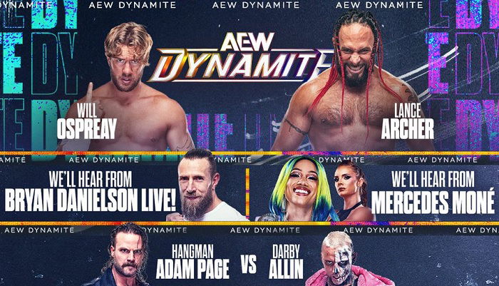 On tap for tonight’s two-hour program is Darby Allin vs. Hangman Page, Will Ospreay vs. “The Murderhawk Monster” Lance Archer, Willow Nightingale vs. Kris Statlander in a CMLL World Women’s Championship Eliminator, as well as The Conglomeration (Orange Cassidy, Mark Briscoe, & Tomohiro Ishii) vs. Roderick Strong, The Beast Mortos, & RUSH.