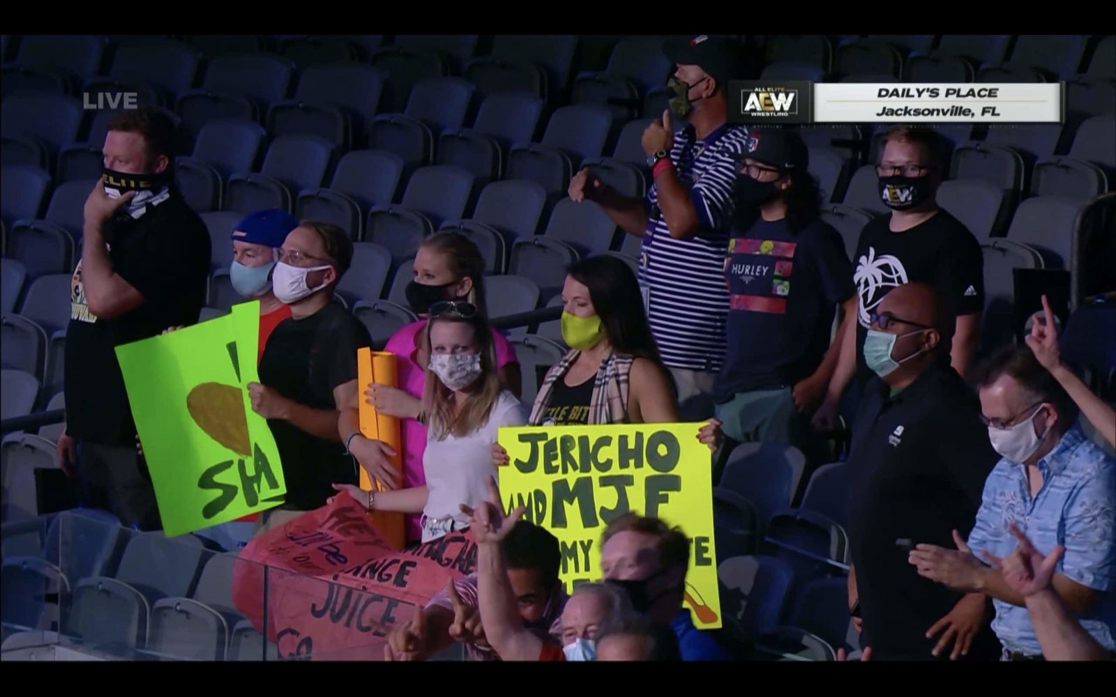 AEW reportedly had nearly double the amount of fans present for Wednesday’s Dynamite tapings at Daily’s Place in Jacksonville, Florida, according to Pro Wrestling Sheet. New COVID-19 protocols were also in place.