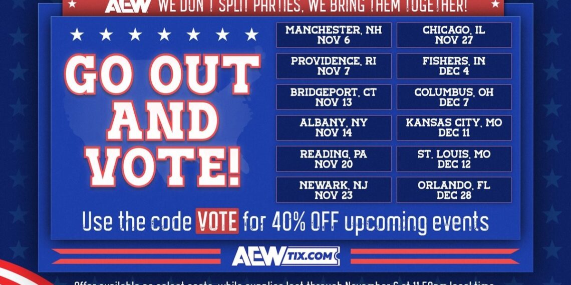 “Tomorrow is Election Day,” the statement read. “Don’t forget to Vote, and while you’re at it, take advantage of this special offer of up to 40% off of select seats at our upcoming 2024 AEW shows!”
