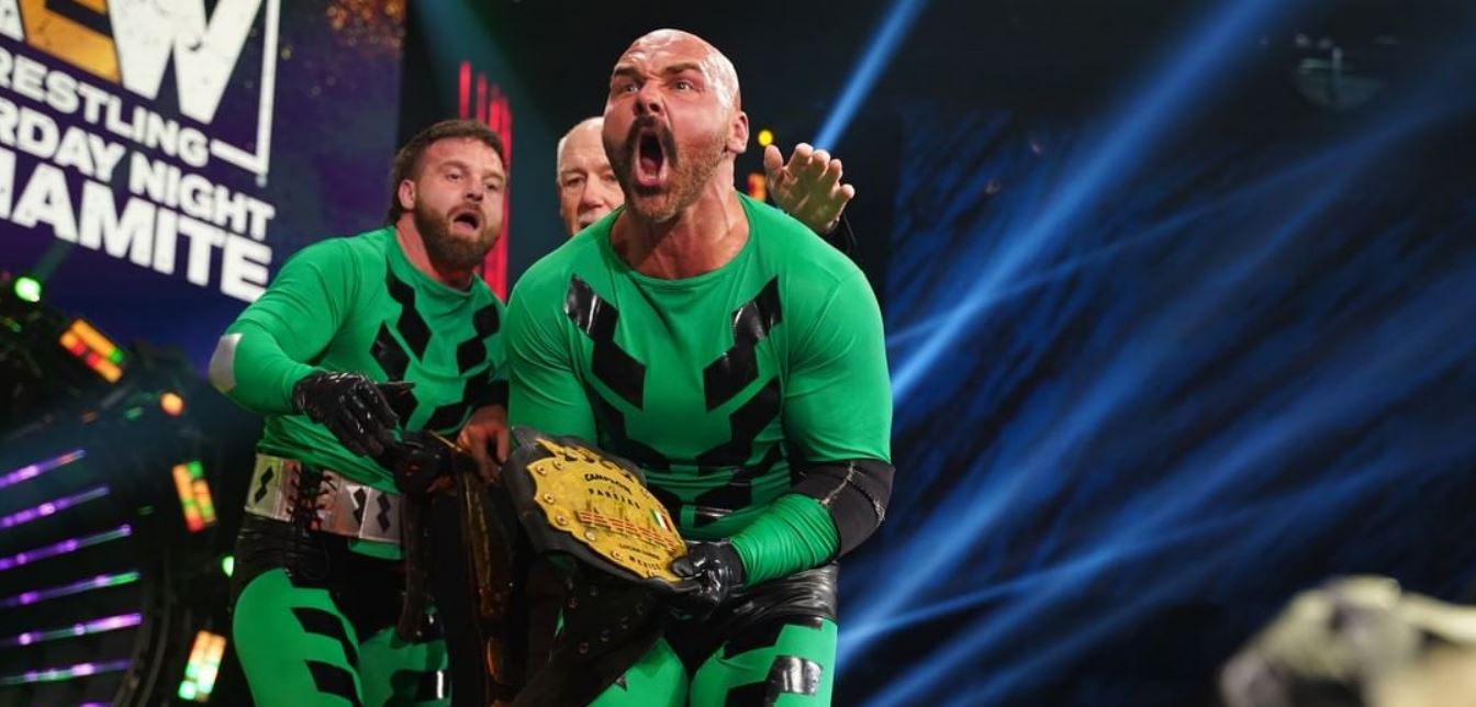 This week’s Saturday Night edition of Dynamite aired live from the James L. Knight Center in Miami, and featured several matches and segments advertised ahead of time – the bracket reveal for the AEW World Title Eliminator Tournament, CM Punk’s return to commentary, Adam Page addressing his Full Gear match with AEW World Champion Kenny Omega, Penelope Ford vs. Kiera Hogan, Jon Moxley vs. Wheeler Yuta, Malakai Black vs. Dante Martin, AEW World Tag Team Champions The Lucha Brothers defending the AAA World Tag Team Titles against Andrade El Idolo’s mystery masked tag team, SuperKliq’s Adam Cole and The Young Bucks vs. The Dark Order’s Alex Reynolds, Evil Uno and John Silver, The Inner Circle fully reuniting against Men of the Year and American Top Team, and Bryan Danielson vs. Bobby Fish, which ended up being the main event.