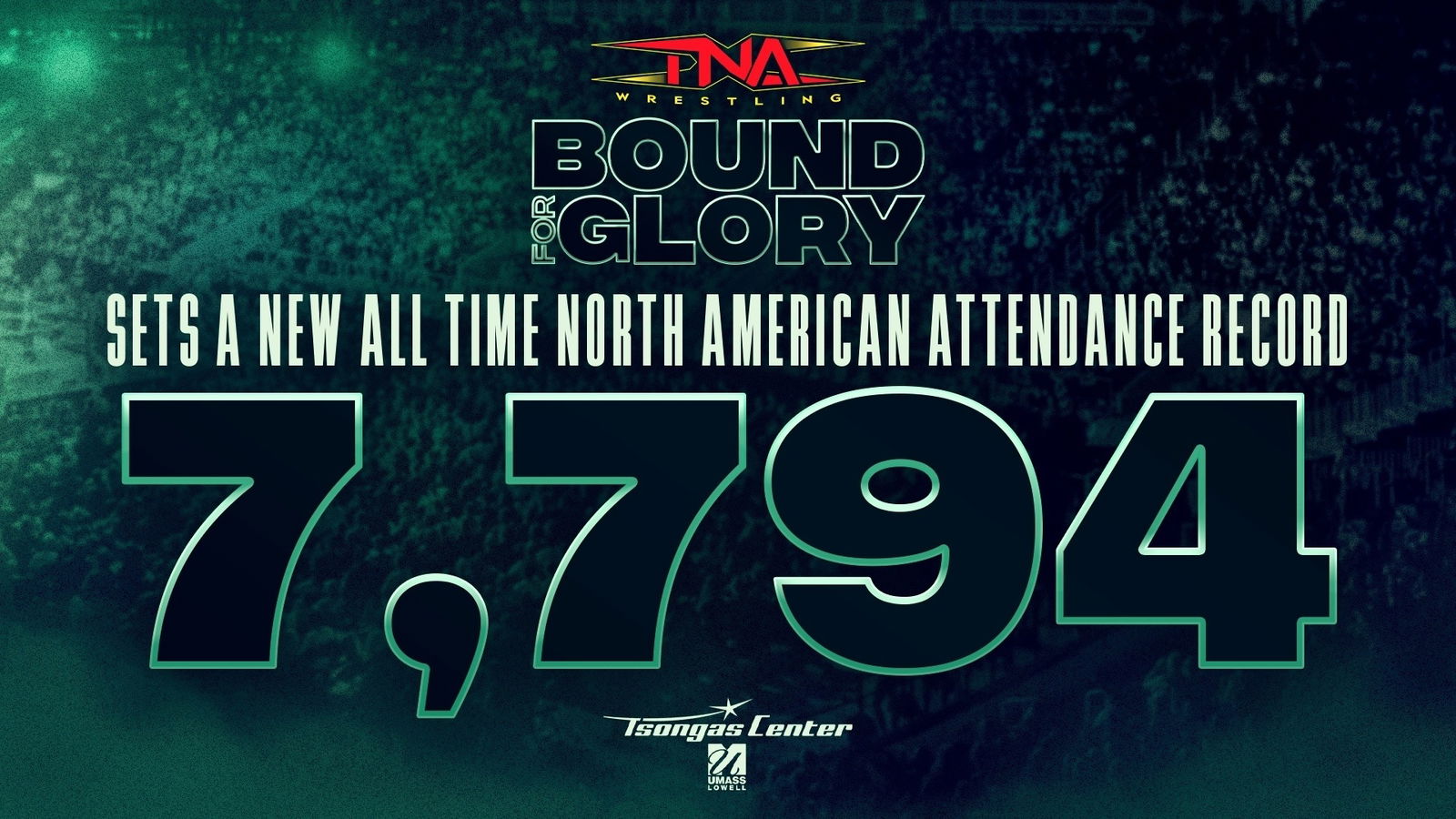 TNA Wrestling has set its new North American attendance record – 7,794 fans in the @TsongasCenter for #TNABoundForGlory! pic.twitter.com/VAEAVtCWpL