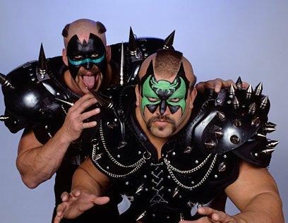 The opening rifts of Iron Man boom on the sound system. Out walk two MASSIVE men in leather vest covered in spikes, spiked dog collars, face paint, and they have huge muscles. From the first time I saw them on AWA TV in early-1986, I couldn’t help but be in awe of them. Hawk was slightly smaller, but he was still a massive man, and he picked grown men up over his head like they were toddlers. Animal was bigger, the powerhouse of the team; and that’s saying something. Together they seemed unbeatable.