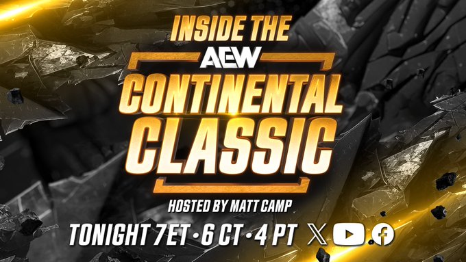 “Inside the Continental Classic hosted by @TheMattCamp premieres TONIGHT, exclusively on #AEW’s X, Facebook & YouTube at 7pm ET / 6pm CT /4pm PT”