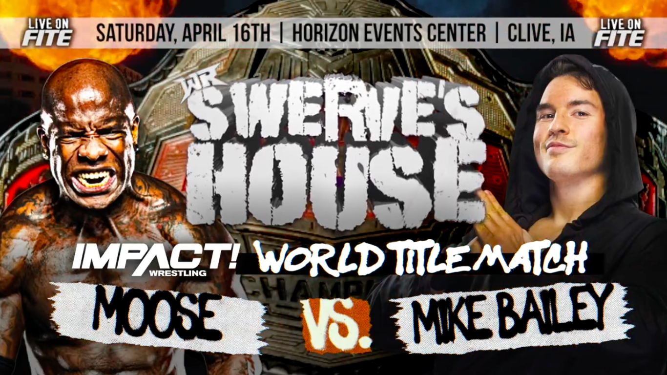 The official Twitter account of the Wrestling REVOLVER has announced that Moose will be defending the IMPACT world championship against Speedball Mike Bailey at the promotion’s April 16th Swerves House event, which will be available for fans to order on FITE TV.