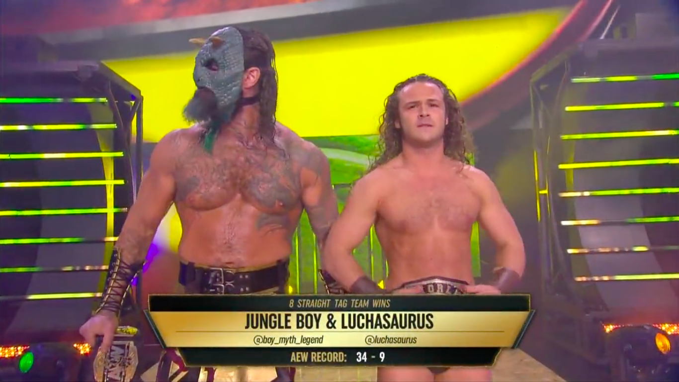 After a wild back and forth that saw a ton of false finishes, Jurassic Express picked up the win after hitting Matt Jackson with their assisted powerbomb finisher. Highlights from the matchup can be found below.