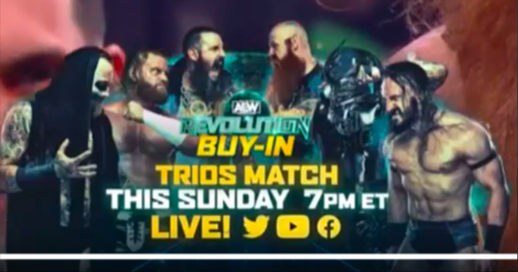 AEW has officially announced that the House of Black (Malakai Black, Brody King, Buddy Matthews) will take on the Death Triangle (Pentagon & PAC) and Erick Redbeard on the Buy-In show of this Sunday’s Revolution pay-per-view. This comes after Redbeard appeared on this evening’s Rampage to help the Death Triangle.
