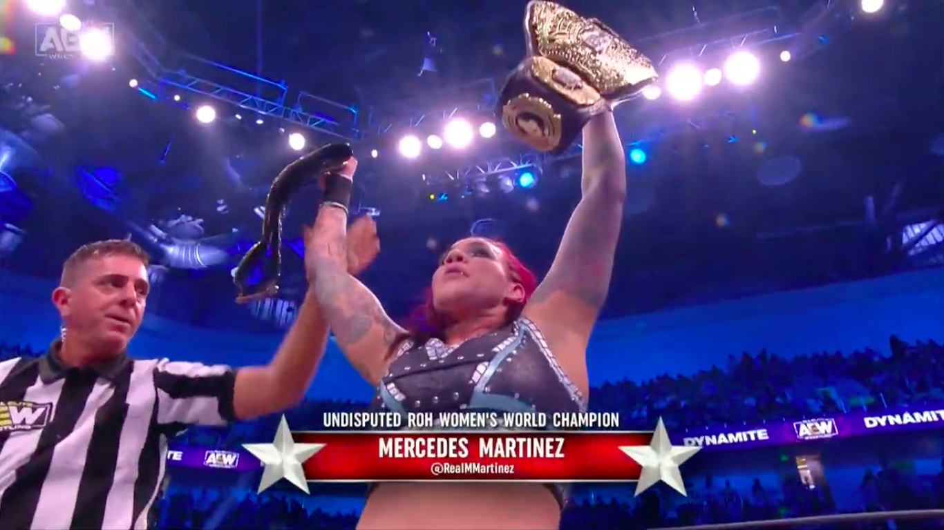 #AndNew!!! The Undisputed @ringofhonor Women's World Champion is @RealMMartinez! What an incredible night it's been here on #AEWDynamite on @TBSNetwork! pic.twitter.com/J1NQyfJ7ue
