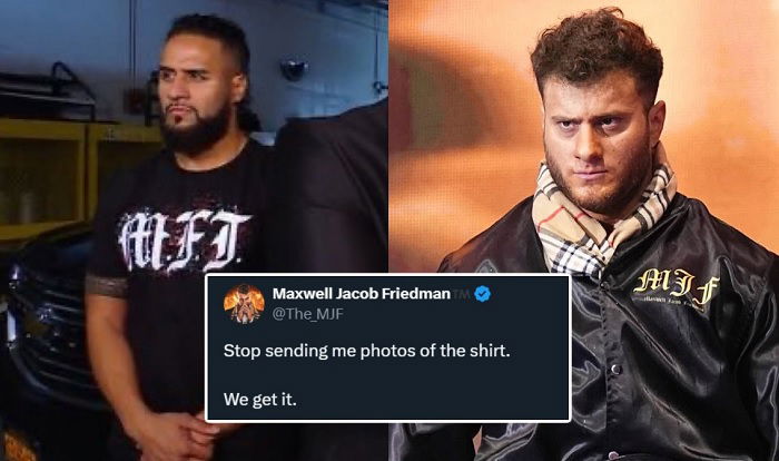 “Stop sending me photos of the shirt,” MJF wrote in response to fans pointing this out to him after seeing Tonga on WWE TV wearing the shirt. “We get it.”