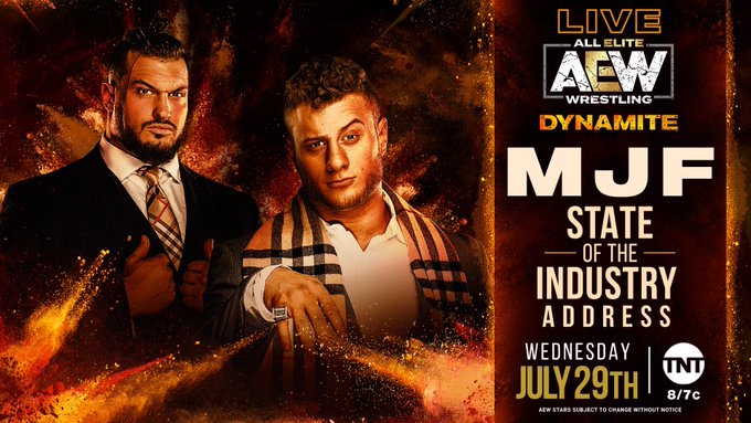 BREAKING NEWS@The_MJF will appear on Dynamite this Wednesday, to address the state of the industry.