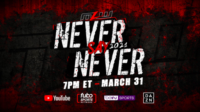 Major League Wrestling issued the following press release announcing the return of their “Never Say Never” special, which will take place on March 31st and air on DAZN, Fubo Sports, beIN Sports, and the Roku Channel. Details can be found below.