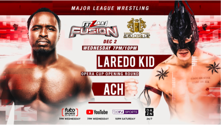 Major League Wrestling issued the following press release announcing a new matchup for this Wednesday’s edition of Fusion. AAA superstar Laredo Kid will be taking on indie sensation ACH in the opening round of the Opera Cup tournament. Details are below.