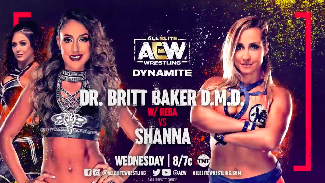 AEW has announced on Twitter that Britt Baker will be taking on Shanna in singles-action on next week’s edition of Dynamite on TNT. This will be a nice warm-up for the Dentist as she prepares for former NWA women’s champion Thunder Rosa at Beach Break.