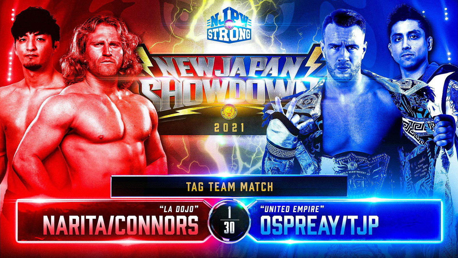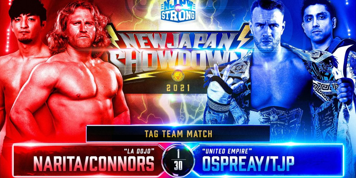 Perkins knocks Connors off the apron. Ospreay drops Narita with The Chelsea’s Grin. Perkins applies The Octopus Stretch. Ospreay goes for The Storm Breaker, but Narita lands back on his feet. Narita applies The Sleeper Hold. Connors has Perkins trapped in The Camel Clutch. Narita transitions into The Cobra Twist. Ospreay grabs the middle rope which forces the break. Narita tags in Connors. Narita kicks Ospreay in the gut. Double Irish Whip. Ospreay sends Narita crashing to the outside. Connors with a knife edge chop. Perkins made the blind tag. Ospreay with a waist lock go-behind. Ospreay SuperKicks Connors. Assisted CodeBreaker for a two count. Ospreay dumps Narita out of the ring. Narita avoids Pip Pip Cheerio. Connors denies The Detonation Kick. Connors decks Perkins with a back elbow smash. Narita tags himself in. Perkins dodges The Big Boot. Perkins applies The Dragon Sleeper. Narita nails Perkins with The Pump Kick. Narita kicks Ospreay off the apron. Connors Spears Perkins. Narita connects with The Bridging Overhead Belly to Belly Suplex to pickup the victory. After the match, Perkins attacks the left knee of Connors. Ospreay hits Pip Pip Cheerio. Ospreay throws the referee out of the ring. Narita avoids The Hidden Blade. Narita drops Ospreay with The Big Boot. Narita poses with the IWGP World Heavyweight Championship. Narita proceeds to challenge Ospreay to a singles match.