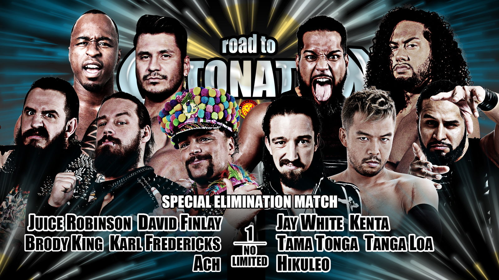 Brody King and Hikuleo will start things off. Bullet Club immediately King from behind. Team FinJuice joins the fray. Team FinJuice dumps Hikuleo over the top rope. Hikuleo has been eliminated. Bullet Club regroups on the outside. King tags in Finlay. Finlay ducks a clothesline from White. Finlay drops down on the canvas. Finlay dropkicks White. Finlay applies a wrist lock. Finlay tags in Robinson. Robinson with a Flying Axe Handle Strike. Robinson taunts Bullet Club. Robinson grabs a side wrist lock. Robinson tags in ACH. Team FinJuice continues to work on the left wrist of White. Finlay kicks White in the gut. White reverses out of the irish whip from Finlay. Finlay dives over White. Kenta kicks Finlay in the back. White pulls Finlay down to the mat. Tonga slams Finlay’s head on the top rope. White repeatedly stomps on Finlay’s chest. White tags in Loa.