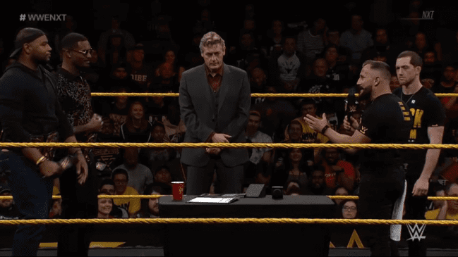 O’Reilly goes on to tell a joke…Street Profits are the nXt Tag Team Championships. Ford & Dawkins stomp around and pretend to laugh. Fish says it’s a good punch line.