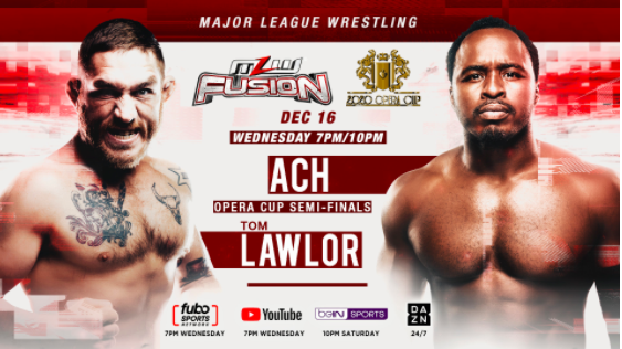 New York — Major League Wrestling today announced ACH vs. “Filthy” Tom Lawlor in the semi-finals of the Opera Cup for this Wednesday December 16 at 7pm ET on MLW’s flagship weekly series, FUSION, available on YouTube, Fubo Sports, Pluto TV. Learn more about where to watch.