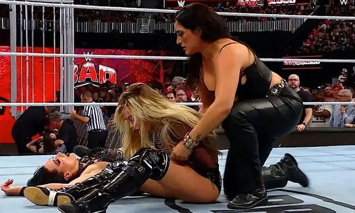 With Dominik Mysterio inside of a Shark Cage hanging above the ring, one he ended up escaping mid-way through the bout, Morgan was on her way to certain defeat at the hands of Rhea Ripley, when out of nowhere, a WWE Superstar made their return.