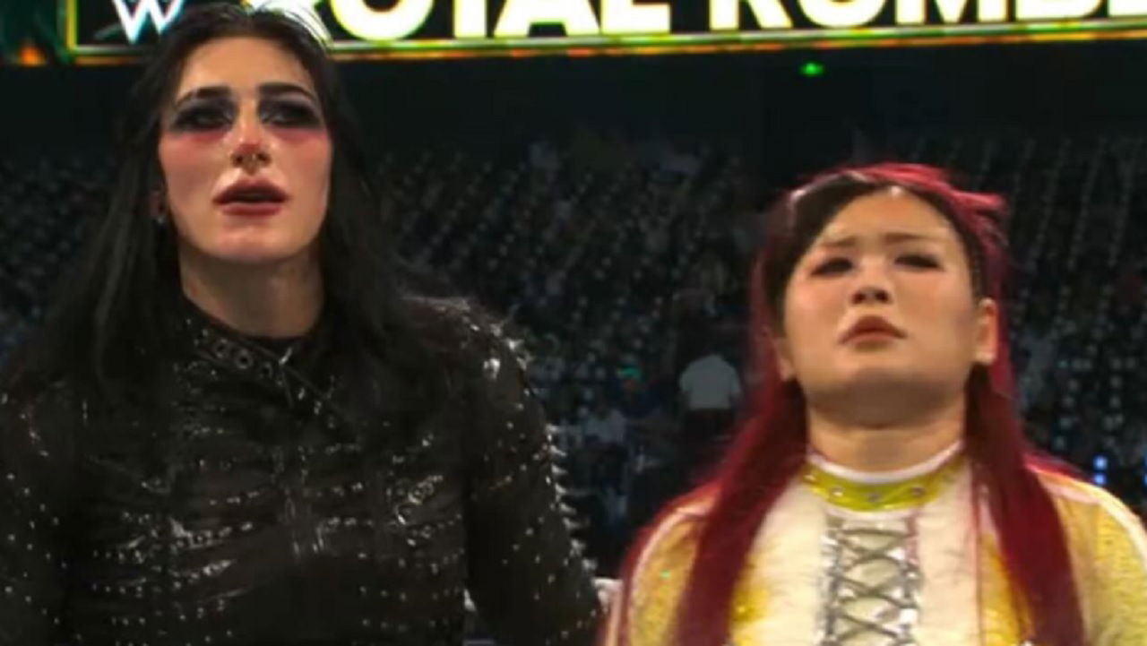 Entering the match at numbers 20 and 22 respectively, IYO Sky and Rhea Ripley shared a brief but memorable moment together at the Premium Live Event. While their gear choices couldn’t have been more different at first glance, the duo was quietly telling the same story.