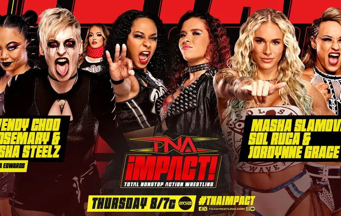 NXT’s Wendy Choo, Rosemary, & Tasha Steelz with Alisha Edwards vs. TNA Knockouts Champion Jordynne Grace, NXT’s Sol Ruca, & Masha Slamovich