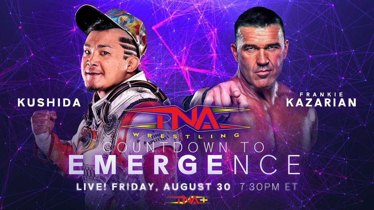 #KUSHIDA clashes with @FrankieKazarian on the Countdown to #TNAEmergence LIVE & FREE Friday, August 30 at 7:30 PM ET on TNA+!