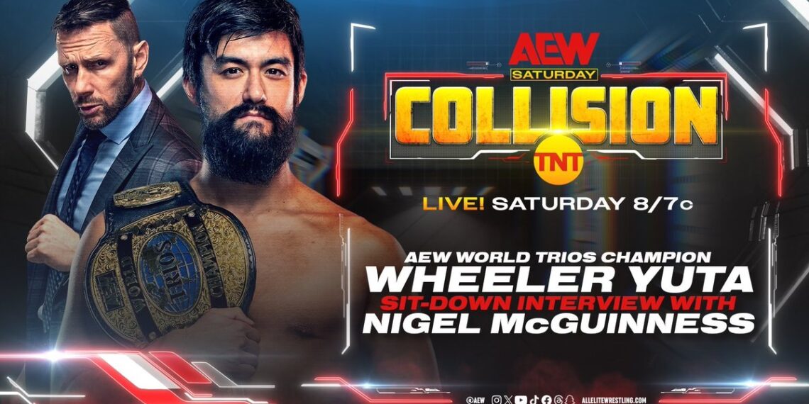 Saturday Night #AEWCollision@McGuinnessNigel will interview AEW World Trios Champion @WheelerYuta on AEW Saturday Night Collision!TOMORROW NIGHT at 8pm ET/7PM CT on TNT! pic.twitter.com/AY8AUciMOY
