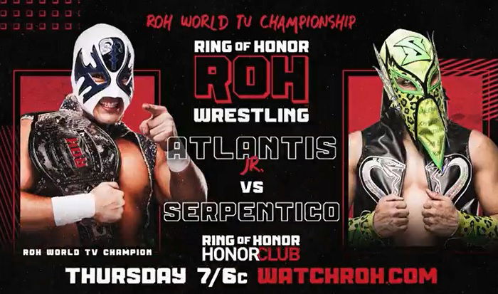 On Wednesday, Ring Of Honor announced Atlantis Jr. will be putting his ROH World TV title on-the-line against Serpentico in one of the featured bouts on this week’s episode of ROH On HonorClub.