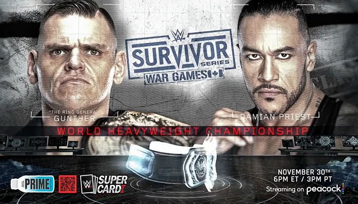 As WWE World Heavyweight Champion GUNTHER made his way to the ring to start off the show, a graphic flashed across the screen to officially announce “The Ring General” versus Damian Priest for the title at WWE Survivor Series: WarGames 2024.