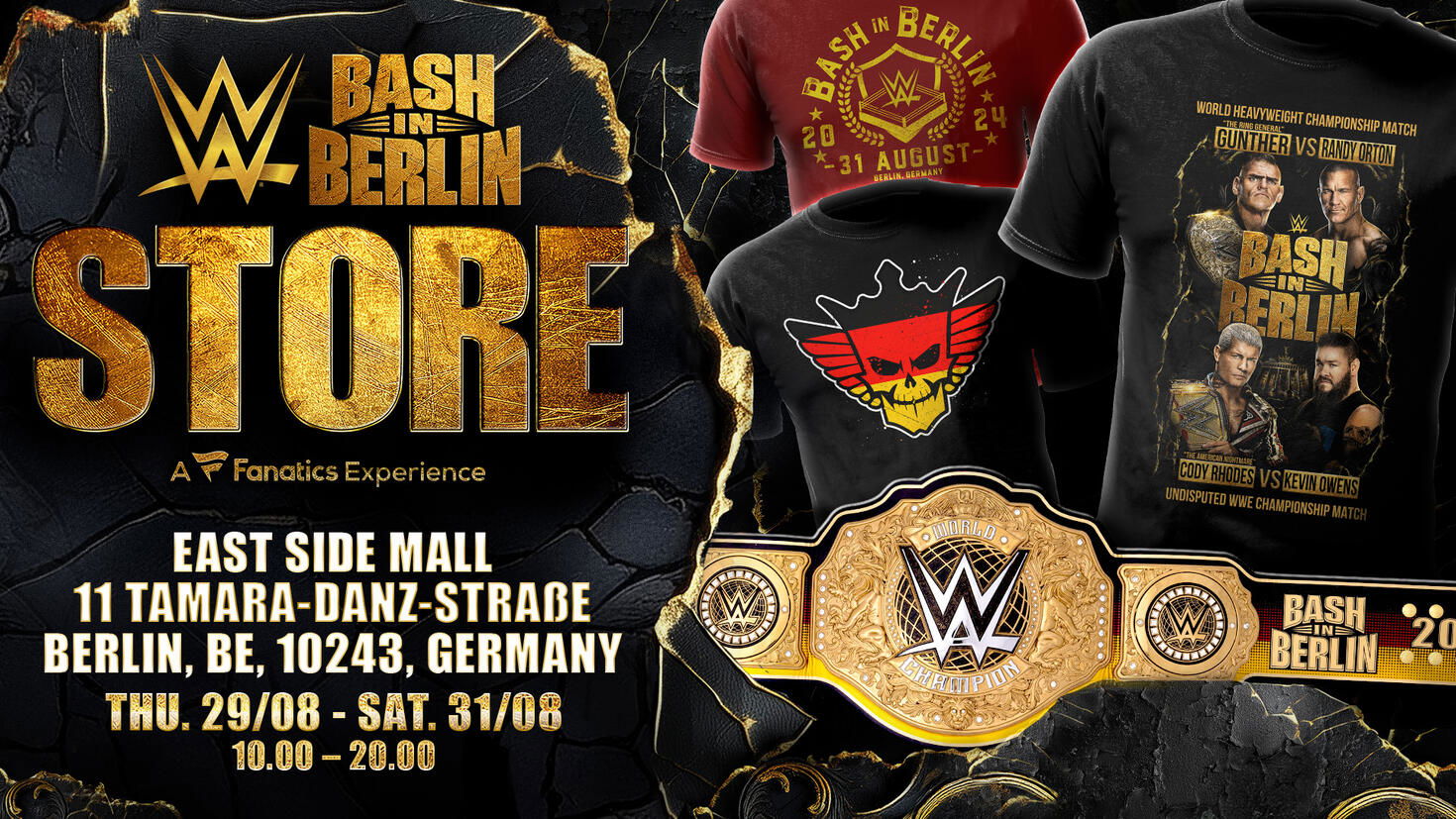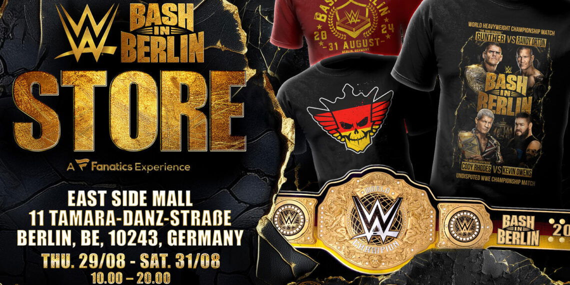 Experience the largest collection of WWE Bash in Berlin merchandise under one roof when the official Bash in Berlin Store comes to the East Side Mall, Thursday, Aug. 29, to Saturday, Aug. 31.