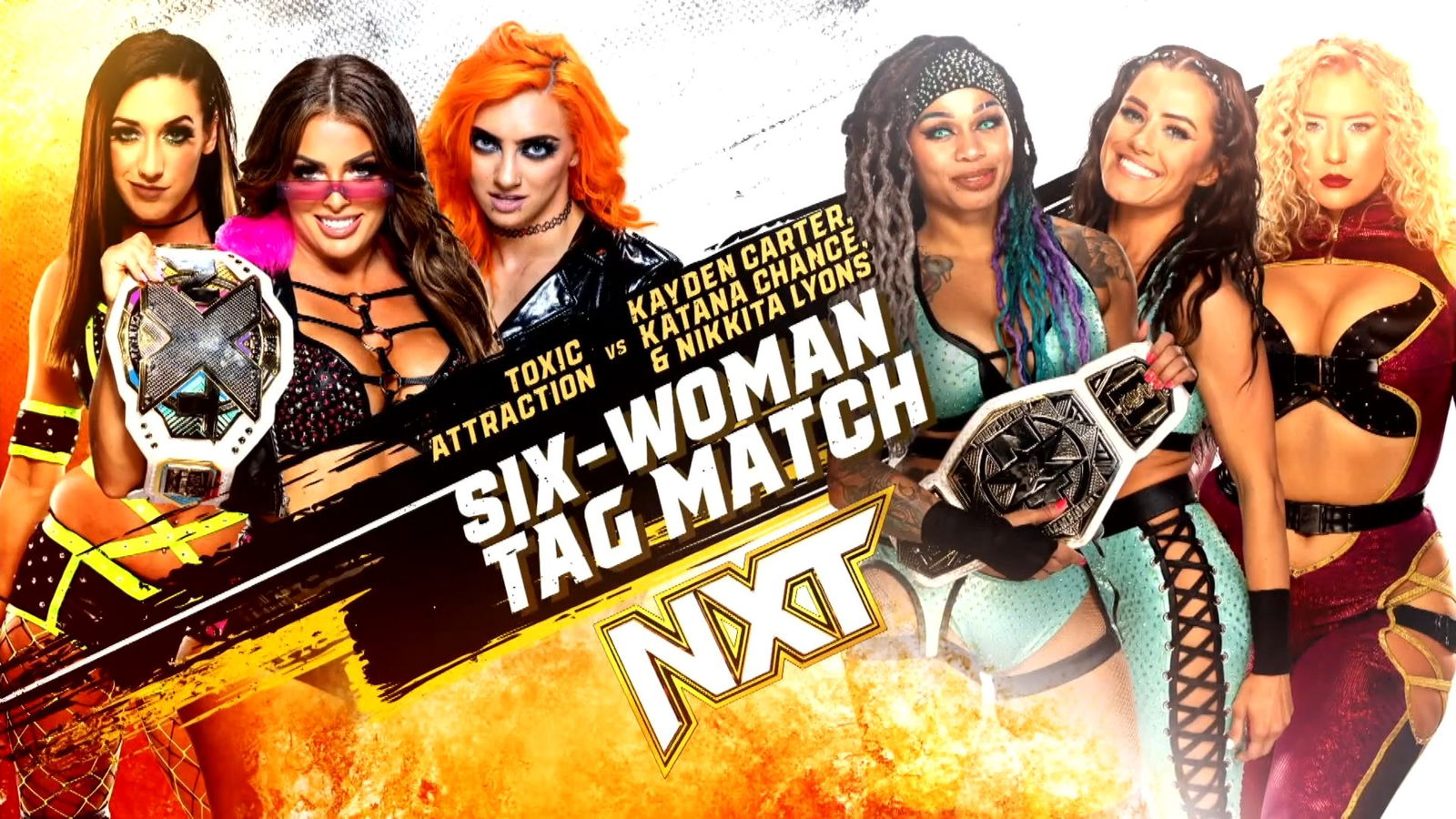 * Toxic Attraction (Gigi Dolin, Jacy Jayne, NXT Women’s Champion Mandy Rose) vs. Nikkita Lyons and NXT Women’s Tag Team Champions Katana Chance and Kayden Carter