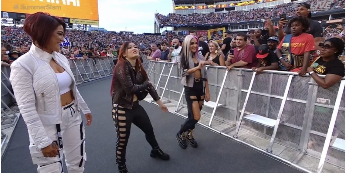 Io Shirai made her WWE return at tonight’s SummerSlam, aligning with Bayley and Dakota Kai, who were making their returns as well.