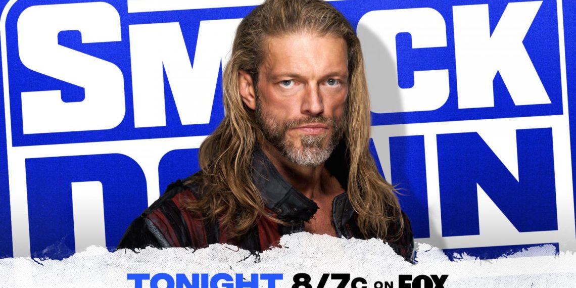 – Back from the break and out comes WWE Hall of Famer Edge to a pop. The pyro goes off as the Royal Rumble winner heads to the ring and poses in the corner.