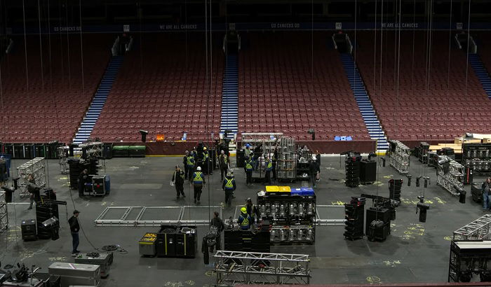 WWE’s production team and stage crew are in the process of converting Rogers Arena into a War Zone.